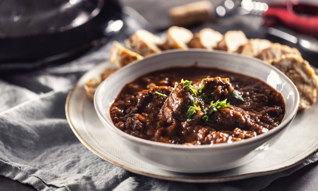 Ein klassisches Wildgericht, das mit seinem intensiven Aroma und zartem Fleisch begeistert. Langsam geschmort entfalten sich die feinen Aromen von Rotwein, Kräutern und Wurzelgemüse zu einer harmonischen Sauce. Ein festliches Gericht, das besonders in der kühlen Jahreszeit für Genuss und Wärme sorgt.